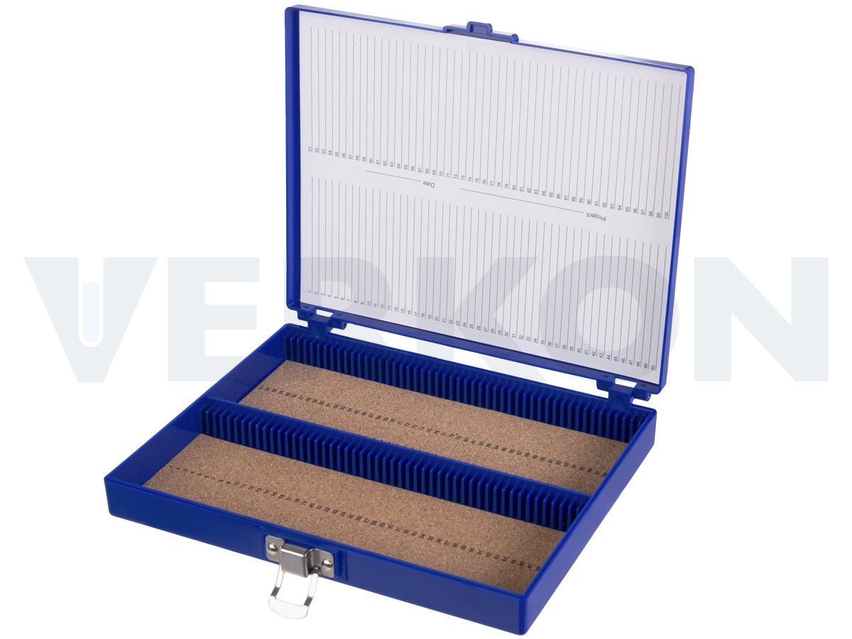 | OUT 130 950 022 438 | Krabice na podložní skla, pro 100 ks mikroskel, PS, Barva: Modrá | Nové |